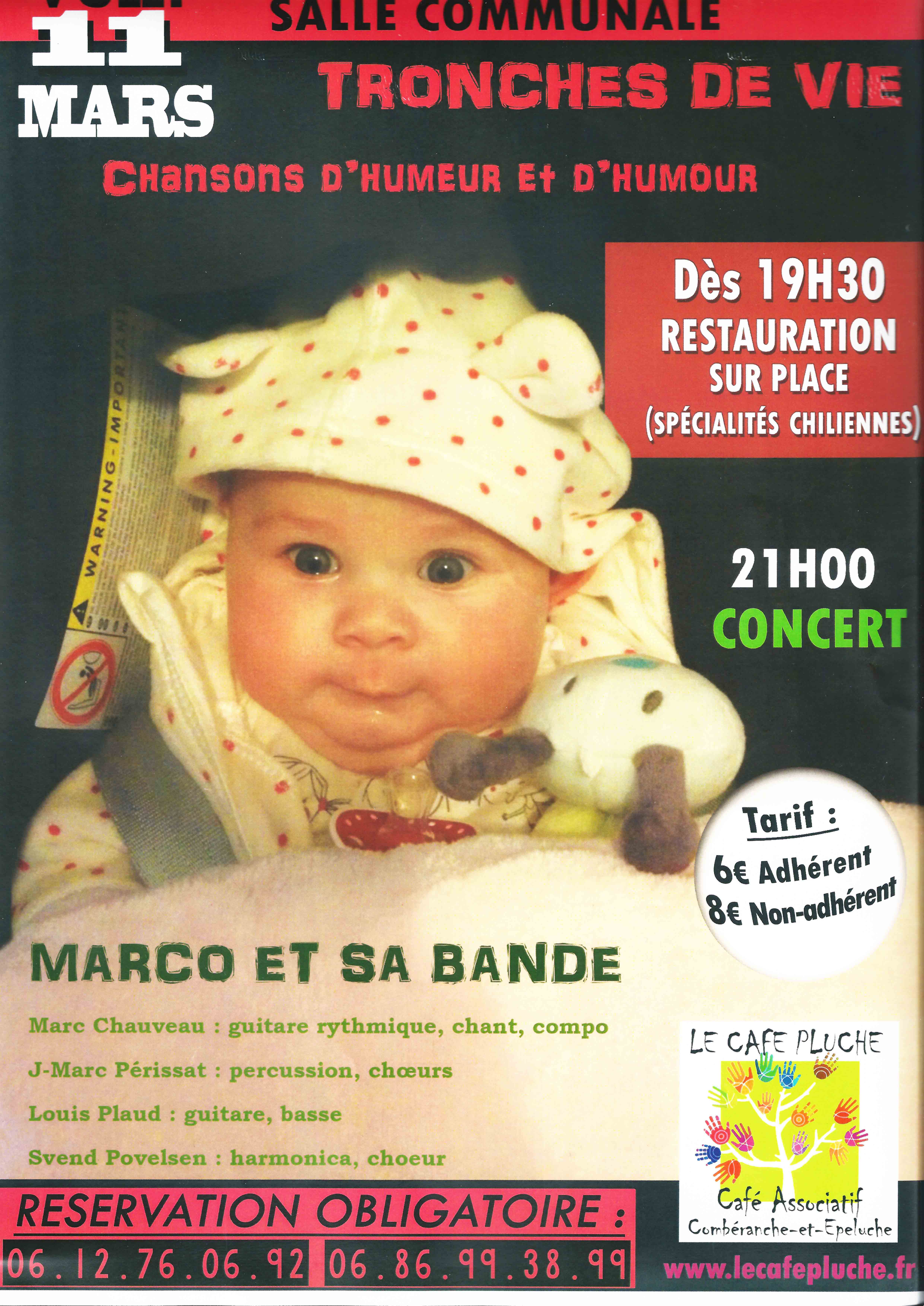 Une galerie de portraits en chansons, pleines d’humeur, d’humour et… d’amour, soutenues par des musiciens charentais de talent (percu, harmo, guitare). Vendredi 11 mars à partir de 19h30 à la salle communale. Concert à 21h et dès 19h30 apéro dînatoire avec des spécialités chiliennes. A ne pas manquer !