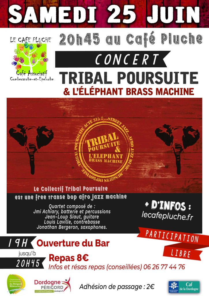 le Collectif Tribal Poursuite est une « free transe bop afro jazz machine »(!). Ils seront au café en version quartet après nous avoir régalé l’été dernier en trio.