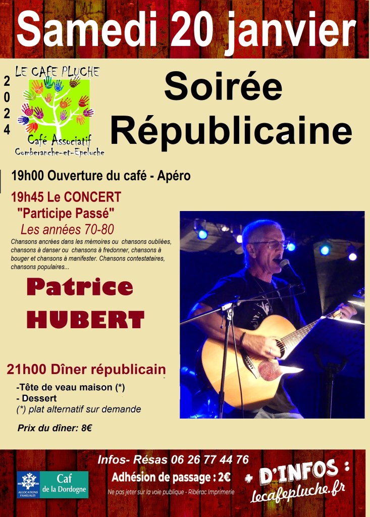 Notre ami Patrice Hubert, animera le début de soirée en musique comme il l’a déjà fait l’an passé mais avec un nouveau spectacle: « Participe Passé ». Les années 70/80