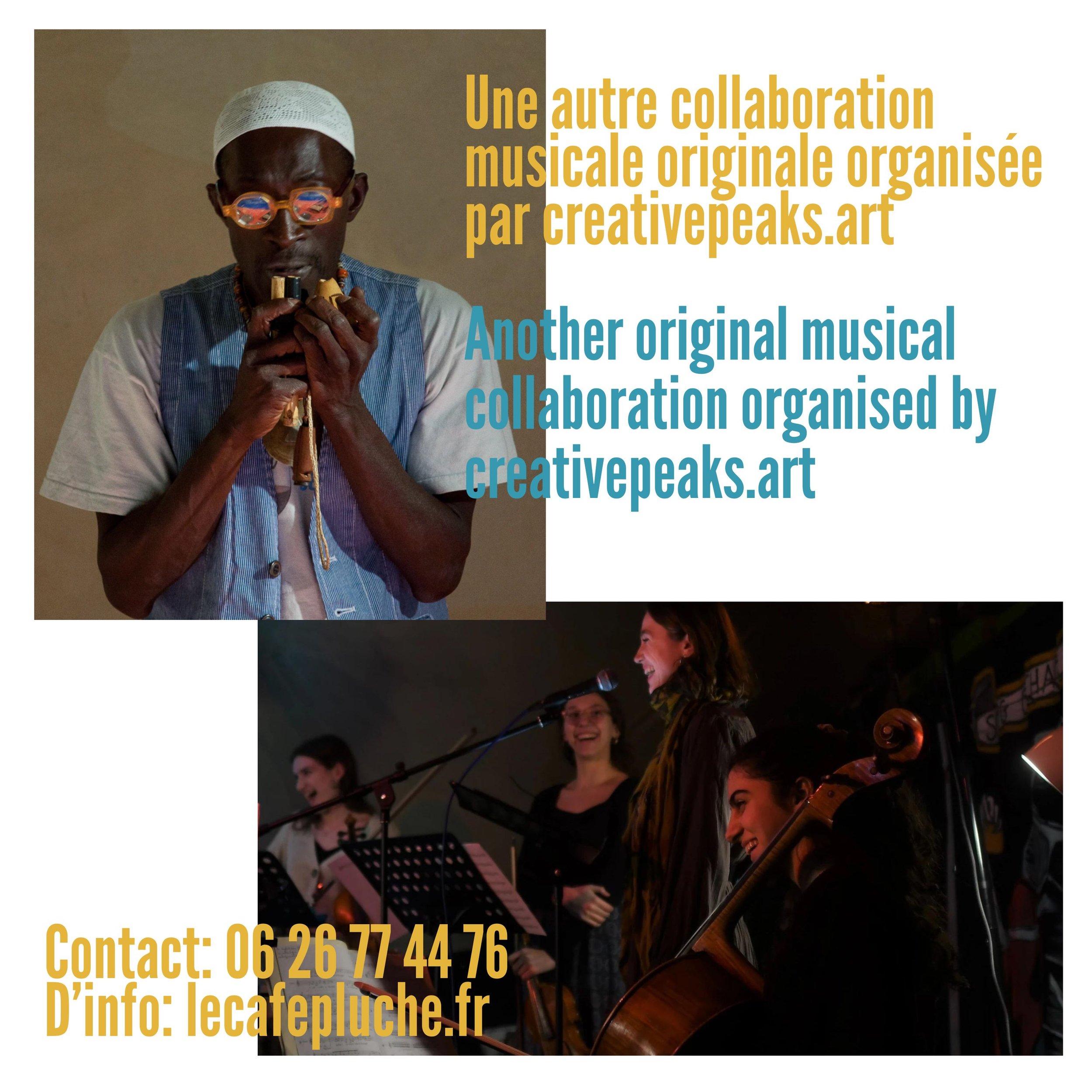 Join Creative Peaks for the part of their series showcasing the musical variety of different countries and styles.. Over four days, Senegalese musician Dudù Kouaté and the classical group Nomad will blend their unique talents for an unforgettable evening of exciting and original music at the brilliant Café Pluche!