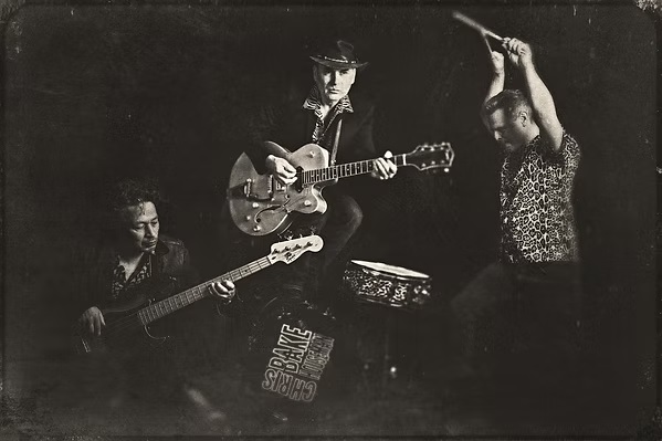 Ils se sont perdus dans l’immense jungle du Rock’n’Roll & du Blues dés leur adolescence et n’ont jamais pu en ressortir …Ces survivants d’une espèce aujourd’hui en voie d’extinction vont vous emmener dans les coins les plus reculés de leur biotope musical, traversant les bayous envasés, les mangroves hostiles, à coups de Griffs et de groove , si bien que les spectres de Messieurs Williams, Cash, Cochran,Holly, Berry & Vincent ne sont jamais loin dans la brume qui se dégage de leurs prestations endiablées …