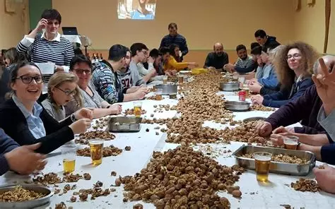A partir de 17h30 samedi, le café vous propose de vivre un moment collectif autour d’une activité ancestrale du Périgord, l’énoisage. En effet, après avoir ramassé et trié les noix, les avoir fait casser par Jean Louis Magne l’astucieux bricoleur de machine à casser les coquilles, il nous reste encore ce soir à trier le bon du mauvais pour pouvoir déguster plus tard les cerneaux en gâteaux, salades ou huile savoureuse!