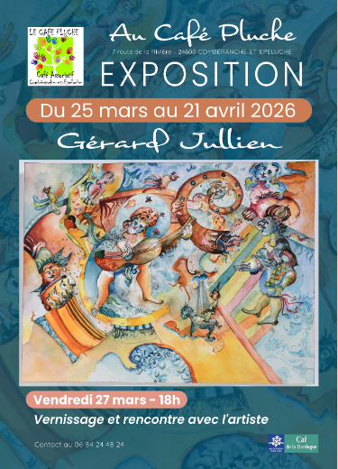 Gerard est aussi un homme public, qui aime partager et faire découvrir ses univers. Il est invité au Café Pluche , en ouverture de l’expo de printemps : un choix de peintures, et de gravures à découvrir en sa compagnie.